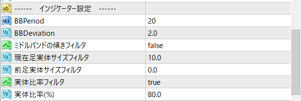 例えば「80」と入力すると、実体の長さが「高値から安値までの長さ」の80%以上あるローソク足の場合にのみ、サインが表示されます。