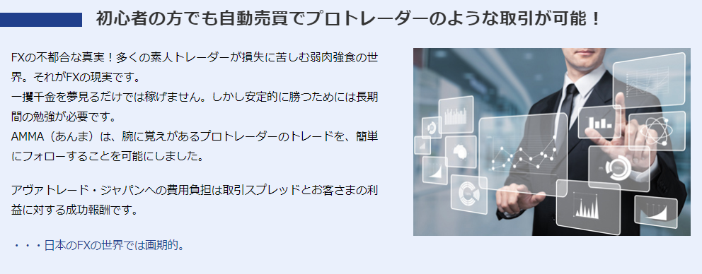 AVATRADEでは「AMMA」という独自の自動売買システムを提供しています。
