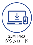 ・お客さまのパソコンまたはスマホにMT4をダウンロード&インストール。