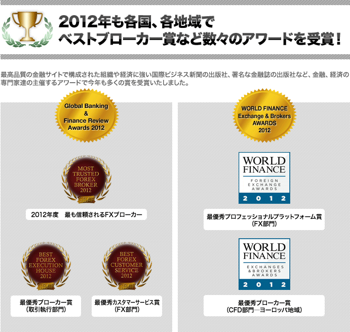 2007年からあるブローカーのため長い実績があり、2012年には各国でベストブローカーしょうなど数々のアワードを受賞した業者です。