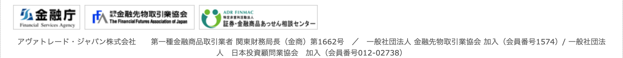 アヴァトレード・ジャパン株式会社の取り扱う店頭外国為替証拠金取引(以下FX取引)及び自動売買(投資顧問契約)、並びにクリプトエックス株式会社の取り扱う店頭デリバティブ取引(以下仮想通貨FX)及び売買シグナル提供サービスは、元本の保証された取引ではありません。